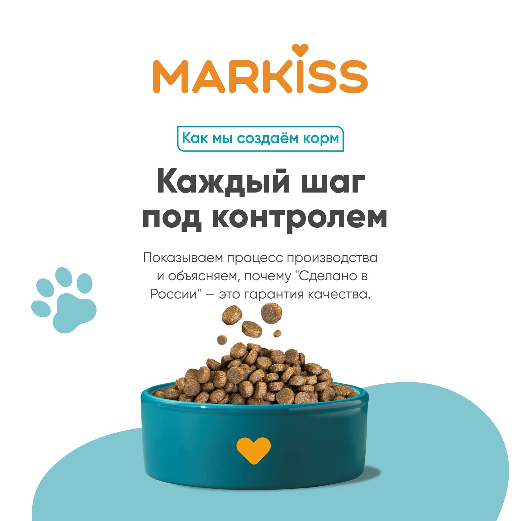 Когда вы выбираете корм Markiss, вы не только даете своему пушистому другу качественное питание, но и поддерживаете отечественного производителя. Знак «Сделано в России» — не просто ярлык на упаковке; это символ качества, надежности и заботы о нашем общем будущем. На каждом этапе производства мы следим за высокими стандартами и используем только свежие, натуральные ингредиенты, чтобы ваш питомец получал лучшее!